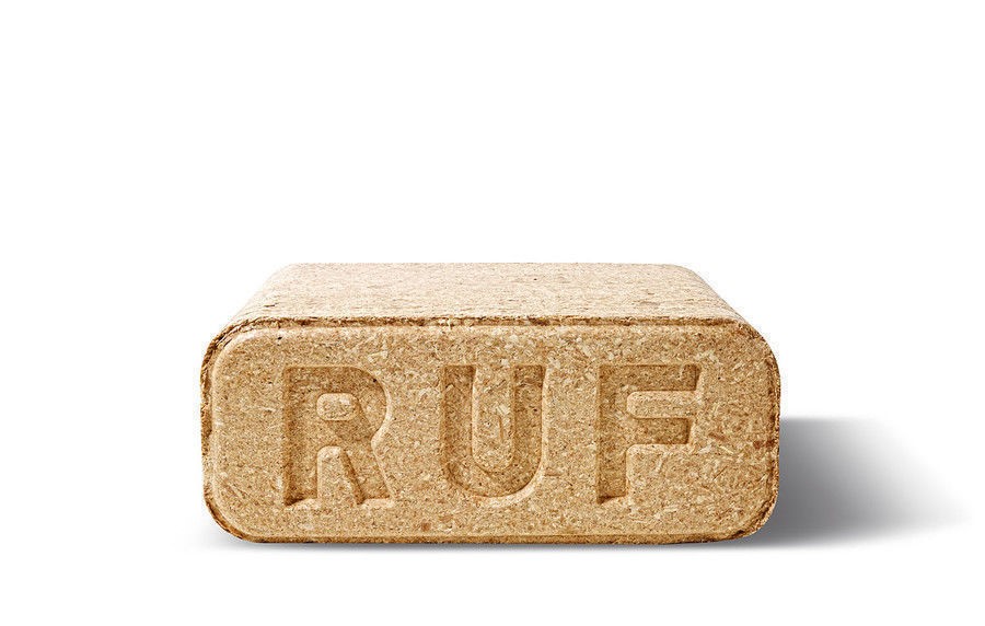 Топливные брикеты РУФ из двух сортов пыли. Продукция изготовлена на немецком оборудовании, без использования связующих химических примесей. В составе измельченная, высушенная и спрессованная древесина. Брикеты расфасованы по 12 штук в полипропиленовую пленку, вес упаковки - 10 кг. Брикеты RUF "Микс" горят более двух часов, что делает их удобными для использования в бытовых условиях.
